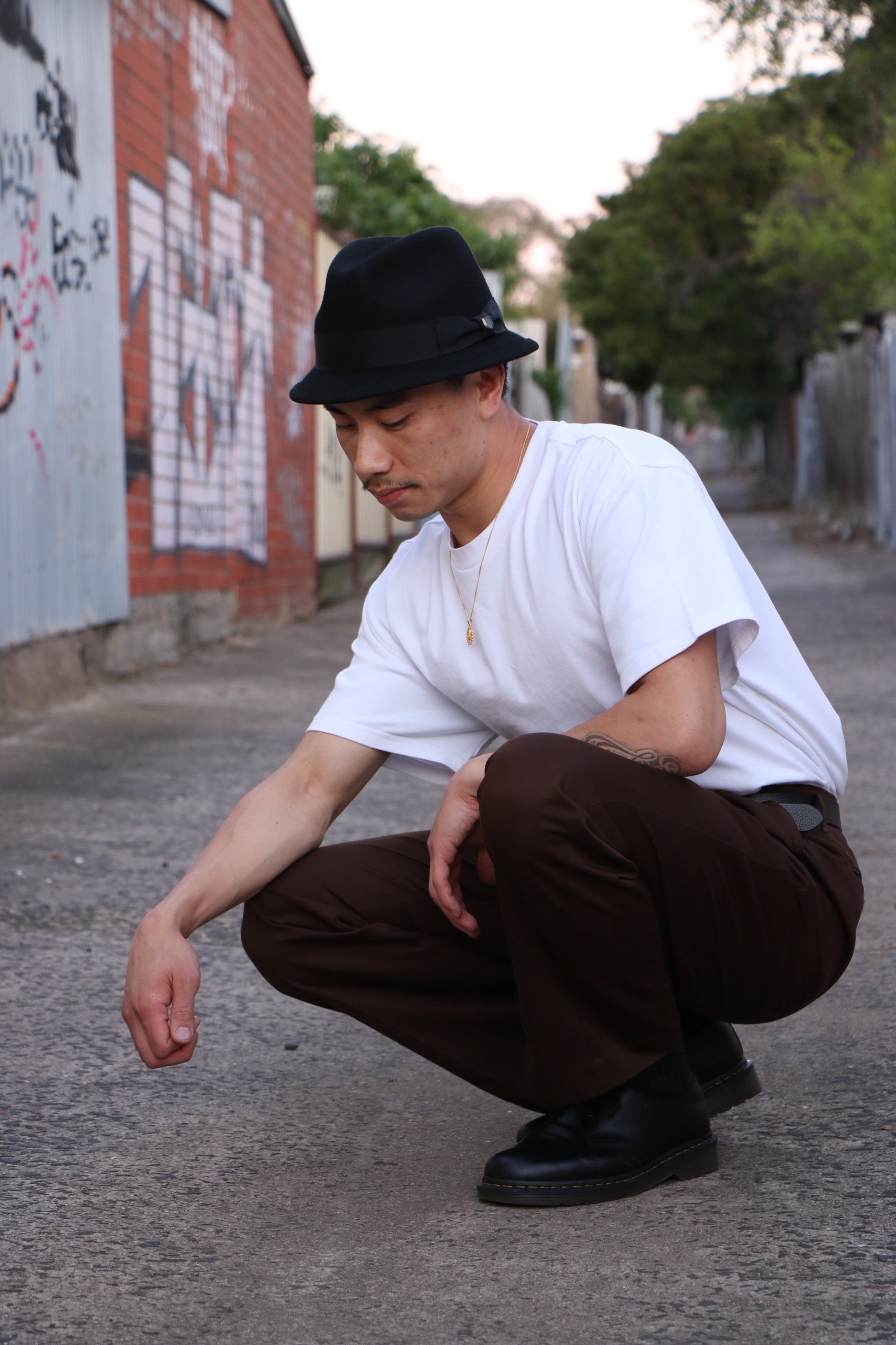 The silhouette comes from the styles I always admired but could never find in Australia. High rise, wide hip, double pleats, subtle taper… nods to Pachuco tailoring. A style born from people who refused to blend in, who ignored rules, trends, and expectations.